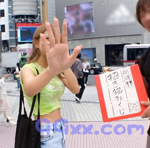 あらすじ:「おみくじ引いてみませんか~?景品あたりますよ~!」と渋谷を練り歩いていたら捕まえたスレンダーギャルをホテルに連れ込み!どんな話にも笑顔で返してくるキャラの良さに付け込んで、透けてるブラを触ってみると…