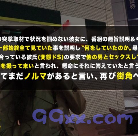 美人人妻をターゲットにネット番組の”テイ”で声をかけ、お宅訪問してSEXをするのが本シリーズの狙い!本日のエリアは新宿♪さっそく美人人妻を捜索していく!!気合十分で取材を開始♪…しかし…何人かの人妻のインタビューまでは成功したものの、どの方もお宅訪問はNG…無情にも時間だけが経過していく…時刻は15時を回った頃。焦りながら辺りを見渡していると、遠くの方で長身の美女が歩いているのを発見!慌ててカメラを構えて突撃インタビュー♪彼女の名前は「栗原絵実」さん26歳♪長澤ま●み似の長身スレンダー美女♪愛想もよく、怪しい風貌の我々にも優しく対応してくれました♪聞くと、身長175cmで結婚前はレースクイーンをしていたという♪この圧倒的スタイルでしたら天職と言えるでしょう!筋肉に目がないというので、筋肉自慢の男優の胸筋を見せつけてお宅訪問♪レースクイーン時代のコスチュームを披露してもらうと、超ハイレグで激エロ♪お礼に男優の筋肉を見せてあげるとメロメロ~♪分厚い胸板にウットリエロ顔♪互いの肉体を触り合い、興奮する両者♪「主人に申し訳ないですぅ」なんて言いながらもアソコはビッショビショ♪突如舞い降りた長身美人人妻と、大量中出し3連発のハードSEXをブチかましました♪