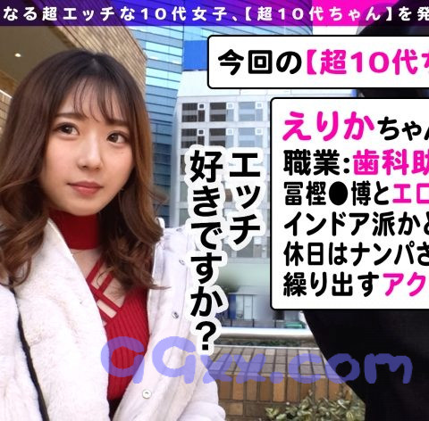 あらすじ:スタッフが運営しているアダルト系動画チャンネルの番外企画に応募してくれたHな10代女子に来てもらい、ノリでそのままHなコトをしちゃいます!撮影を通してそのエロポテンシャルを存分に発揮してもらって、ヤリマンの原石となる超エッチな10代女子、【超10代ちゃん】を発掘する企画です!今回来てくれたえりかちゃんは、持ち物チェックをするとカバンの中にはエロ本が出てくるようなスケベ女子!19歳にして経験人数35人と、なかなかのヤリマンさんですwホテルに到着して、即フェラ抜き!恐ろしいフェラテクで簡単にヌかれちゃいました…
