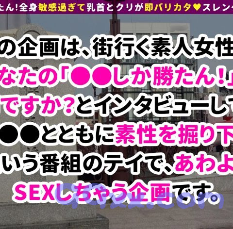 インタビューを通して、【○○しか勝たん!!】とともに素性やエッチな体験談を掘り下げるという企画です!ヤリマンな本性を全開にさらけ出してもらいつつ、じっくりと女の子の美BODYを味わっちゃいましょう♪福岡へ出張取材!!博多美人を発見です!さっそく取材しちゃいましょう♪「地元しか勝たん!!」という地元大好きっ子wめちゃくちゃ良い子ですねw我々はこの辺のお店を何も知らないので、案内してもらうことにします!車で移動し、博多名物もつ鍋のお店へ到着!!鍋をつつきながら、ぶっちゃけトーク開始!せなちゃんは大人しそうな顔をして、セフレが8人もいるみたいです!「性欲が強くて…お酒とか飲むとムラムラしちゃう」と、お酒を飲みながら話すせなちゃん。これは誘ってるんですかね?wそれならば話は早い!一緒にホテルへ向かいます!おっぱいが弱いようで、さわさわするだけで喘ぎ声が漏れちゃってます。エッチな下着の中は、可愛らしい乳首にデカい胸、デカい尻!!エロい!!!感度も良い!おっぱいとマ●コを責めると、盛大に潮吹きwww性欲が溢れてますね!スケベフェラチオからのデカ乳パイズリ!もうチ●コがギンギン!我慢できません!ソファで挿入。正常位、騎乗位、両手を掴んでの立ちバック!!揺れる巨乳が素晴らしい!!そしてベッドでおっぱいに大量射精!博多美人最高ですね!まだまだイキます!お風呂で汗を流しつつ、そのまま浴槽でバックピストン!身体をくねらせ快感を享受するせなちゃん。お風呂を上がり、赤いボンテージに着替え二回戦です!ベッドの上で色々な体位でずっこんばっこん!!最後は中出し&手マン潮スプラッシュ!博多マ●コ、ばりよかと!!!w