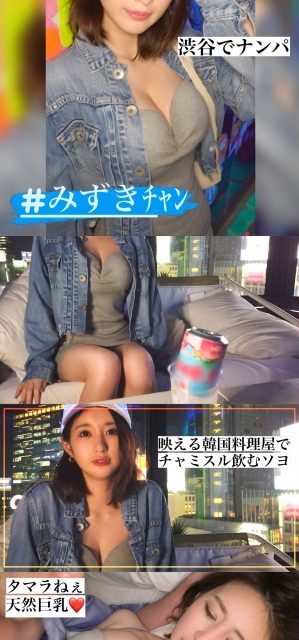 夜の街で遊んでるキャワイイチャンネーに声をかけてガチナンパ!パコってパコってパコりまくる企画第13弾。今回のお相手は、みずきちゃん (20歳)。渋谷フラフラ歩いている女の子に声をかけてナンパ。音楽系の専門学生とのこと。音楽の学び舎に来ているのにそんなにミニスカでいいんすか!?派手な見た目とは裏腹に性格は温厚で肉食女子ではないらしいwでもそのギャップがエロい!お酒を飲むと良く記憶がなくなるまで飲んで隣に知らない男もいることがあるらしいw男のタイプは金を持ってそうな人がタイプで優しいエッチが好きらしいww潮吹きやすい体質らしく、お風呂場に電マをおいて潮吹くまで1人でヤるらしいw男優を待っていると疲れて寝ちゃったみずきちゃん。寝込みを襲われちゃいますwフェラやパイズリをお願いいするとすぐさまシてくれちゃう従順ちゃんwお返しに電マでイジりながら手マンで潮吹き!!バックで即挿入するや否やチ●ポを入れられながら速攻ハメ潮爆裂!エロ衣装に着替えて2回戦!マ●コ大開脚しながら、フェラ!!2回戦はローションを大量に使い、ぬるんぬるんのお尻やおっぱいを堪能しちゃいますw騎乗位で揺れるデカ乳に興奮間違いなし!!「やだぁっ」「無理っ」と弱音を吐くマ●コには渾身のピストンをお見舞い!お終いにたっぷり中出し!!!街で会った素人に、その日に人生最高のSEXを堪能してもらいました!!