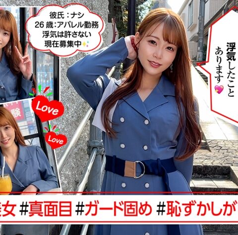 一見、派手めで陽キャそうな美女・アパレル勤務の ゆあさんは26歳。マッチングアプリで男の人と会うのは初めてで実は、飲み会などでも人と話せない陰キャ女子。長く付き合える彼氏が欲しいので出会いを求めて今日は来てくれたとか。話てみるとチャラい男は絶対NG!! 彼女曰く先日、外国人の方に道を聞かれ、言葉が通じない中、一生懸命道案内したのに、別れ際に「実は可愛いから声かけた、連絡先教えて」と。「かわいそうだと思って一生懸命親身になって教えたのに…ナンパかい」騙されたと悔しがっておりました~。初めて会ってエッチをするなんて考えられない/// 恥ずかしそうに言うも断固たる決意が滲み出ています。なので居酒屋とかではなく、天気もいいので、お酒片手に街ブラデートに誘い、そしてなんとかホテルへ連れて行くも…。いや~まだまだガッチガチのガードの固さ。隣に座ろうとするも距離をおいて座る彼女。これは強引に行くしかありませんね 汗。時間はかかりましたがキスを許してくれた彼女。恥じらう姿が堪らなく可愛らしい!! 脱がしてみるとまさかの豊満Gカップ♪ そんな彼女が本気で感じまくり絶頂する彼女は必見です!!