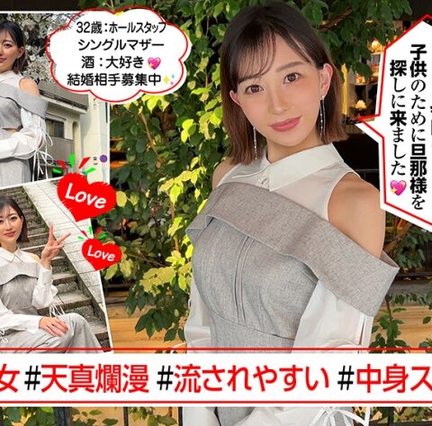 結婚式場のホールスタッフとして働くあんなさん。話してみると10歳のお子さんがいるシングルマザーでした。彼女に元旦那のお話しを聞いてみると…。20歳の時に地元の先輩に連れられてゲイ・バーに行ってみるとゲイの方たちの飾らない、嘘をつかない感じが凄く気に入ったそうで…通うようになったとか(笑)そこで出会った常連のお客さんと仲良くなり、バーのママに勧められ結婚に至ったそうです。こんなクリクリした瞳の可愛らしいママ。そんな天真爛漫な彼女をどう口説こうか、と色々模索していると…びっくりするくらいに押しに弱かった~♪ 今日は実家に子供を預けているらしく、久しぶりのフリータイム。カフェ後に呑みを数軒、ハシゴしてホテルへ。ホテル飲みをしていると彼女の方から「楽しかった~」と久しぶりのフリータイムを楽しんでいるようです。話は勿論、エロトークへ…彼女曰く、ホテルは約二年ぶりになるそうです。オナニーは日々しているようで、子供にバレないように目を瞑り集中してギュッとマ○コを締め、ノーハンドオナニーを繰り返しているらしい笑 この不思議な感性と魅力に惹かれてしまう。そして「う~ん、いっか。中も触って確かめてみて。焦らされたから焦らし返す。ちゃんと教えて」このワードをしっかりチェックして動画、観ていただきたいです~。異次元の美女ママとのワンナイツ♪ 今日は色々と楽しく貴重な経験が僕も出来ました!! しっかり2発射♪これぞ、リアル・ドキュン!! の奥深さ。皆さんも共感して下さい~。