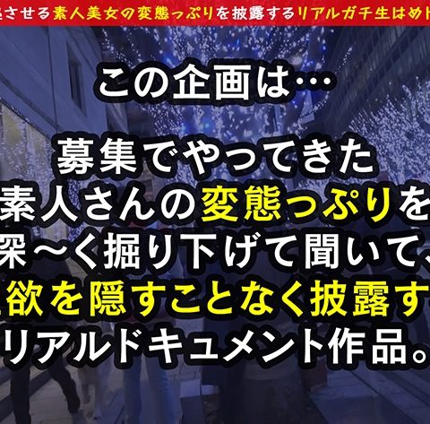 あらすじ:募集でやってきた素人さんの変態っぷり、エロ自慢を深―く掘り下げて聞いて、性欲を隠すことなく披露するリアルドキュメント企画です。今回やってきたスジガネ入りのド変態は、ホノカさん!Jカップ爆乳&蛇舌から繰り出される凄テクの数々に男性陣も即撃沈?!精子ぶちまけ4発射!!