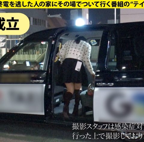 終電を逃した女性に「タクシー代を支払うので家に行ってイイですか?」という某番組のフリをし、声をかけ家まで行ってやっちゃおうという企画です。